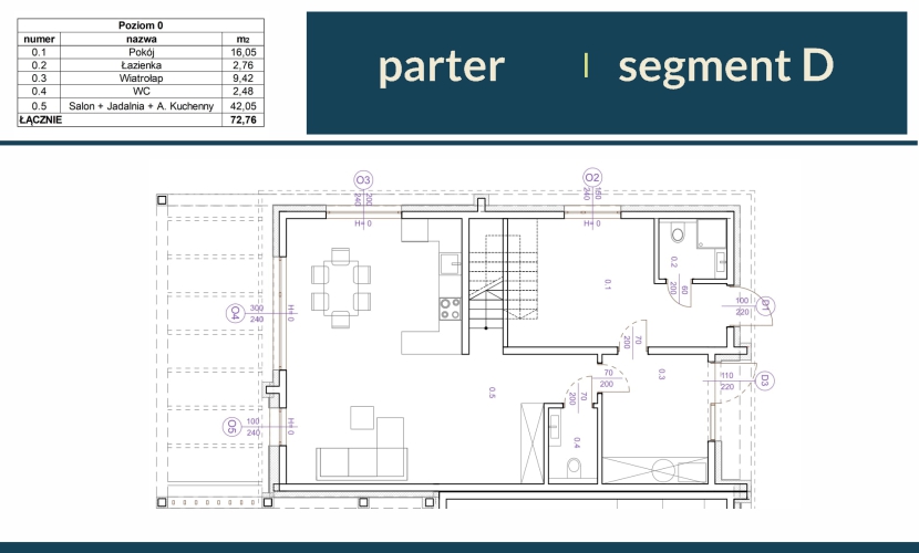 Wracasz z pracy i potrzebujesz popołudniowego słońca? Tutaj na pewno je znajdziesz. Segment D to alternatywa dla tych, którzy chcą mieć widną kuchnie i salon. Z uwagi na swoją południową i zachodnią ekspozycje będzie docierać do Ciebie naprawdę dużo światła. To również doskonała okazja do popołudniowego relaksu na tarasie. Gwarantujemy, że kolacja o zachodzie słońca będzie tutaj naprawdę doskonała. Kolejnym z atutów segmentu D jest fakt, że znajduje się on na końcu osiedla, co gwarantuje większą prywatność.